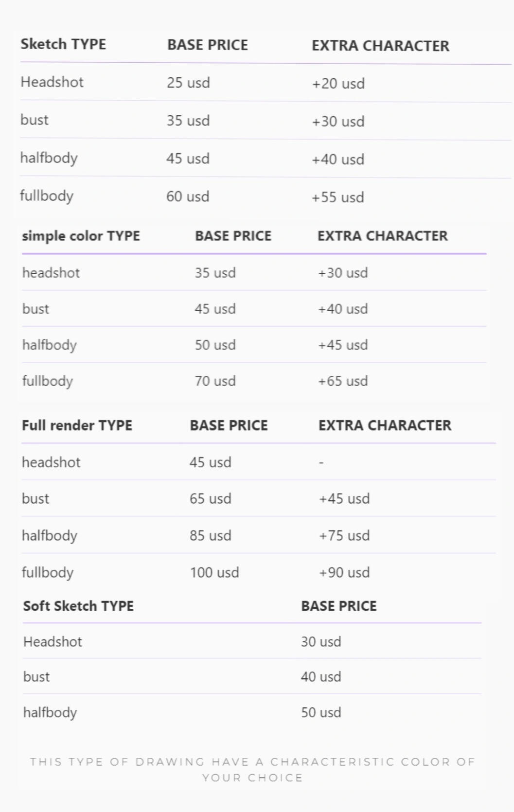 2. I will respond to you to confirm your order and prize; I send you my Paypal payment link (exceptions for Chile).3. I will start working on your commission when I receive your payment.4. During the process, you can ask for changes two times within the sketch and Base color WIPS. If you ask for a change after you had agreed to the Base color WIP, there will be an extra charge for me to do it.5. I'll send you the finished picture to your email!